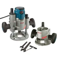 The new flagship of the Bosch router line has arrived with a boatload of premiumfeatures and enhancements. Topping the list is the handle-mounted trigger on boththe plunge and fixed bases, an industry first you'll relish every time you turn the routeron. Another key feature is the excellent visibility in the crucial bit area, illuminatedwith clean, bright LED lighting whenever the router is plugged in, and surrounded by acrystal-clear polycarbonate sub-base. But dig in a little deeper, and you'll find that everyaspect of this premium router has been carefully engineered: from the glassy smoothplunge action and rotating turret plunge-depth stops with microfine depth adjustment,to touches like the cord swivel and the flat rubber top for stable inverted bit changes.And with a 15 amp motor with 2.3 HP under the hood, you'll be getting the mostpowerful router in its class.